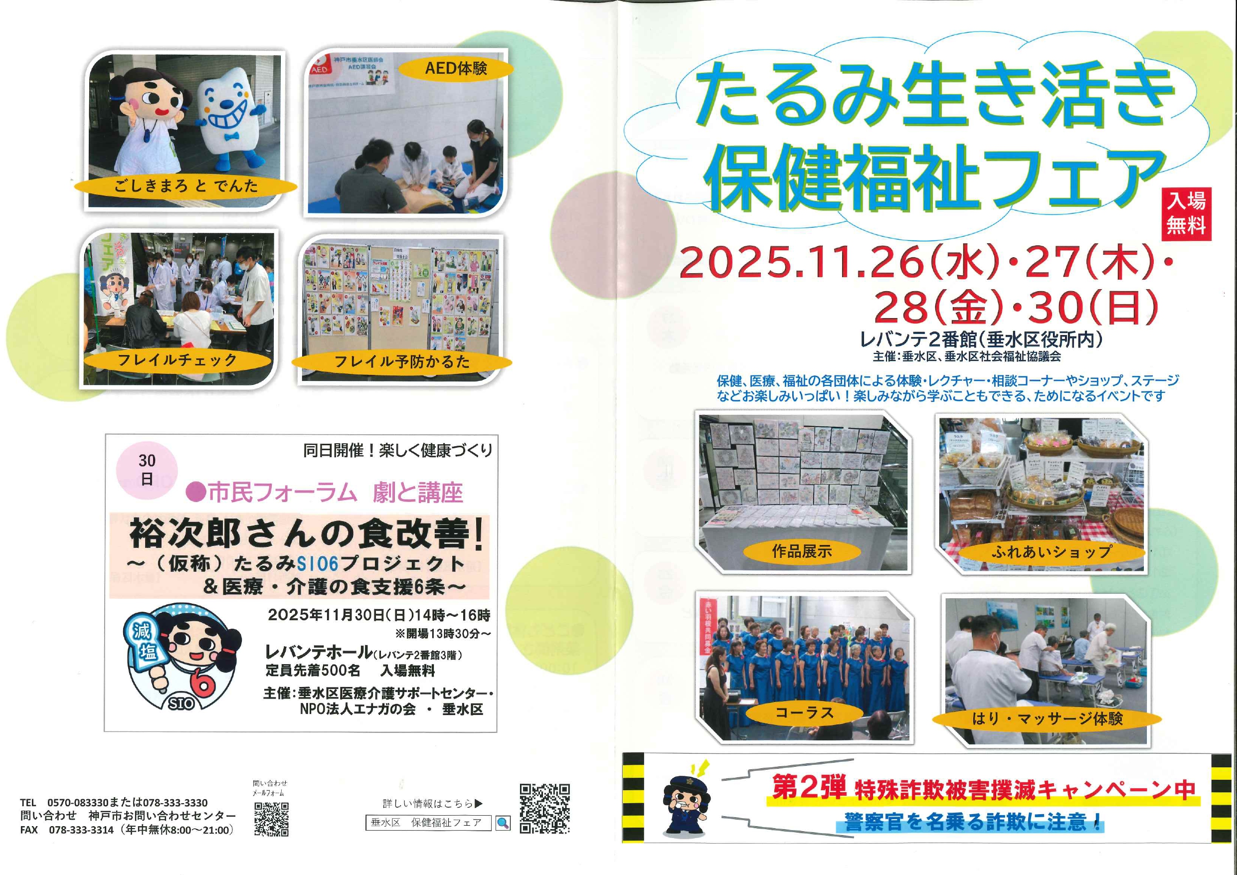 11月26日(水)~11月28日(金)、11月30日(日)に、たるみ生き活き保健福祉フェアが開催されます。